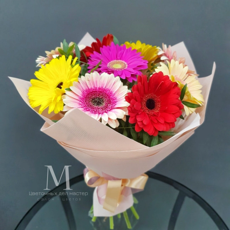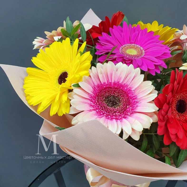 Яркие разноцветные герберы, поднимут настроение каждой, кто получит такой букет в подарок! Состав букета может незначительно отличаться от фотографии.