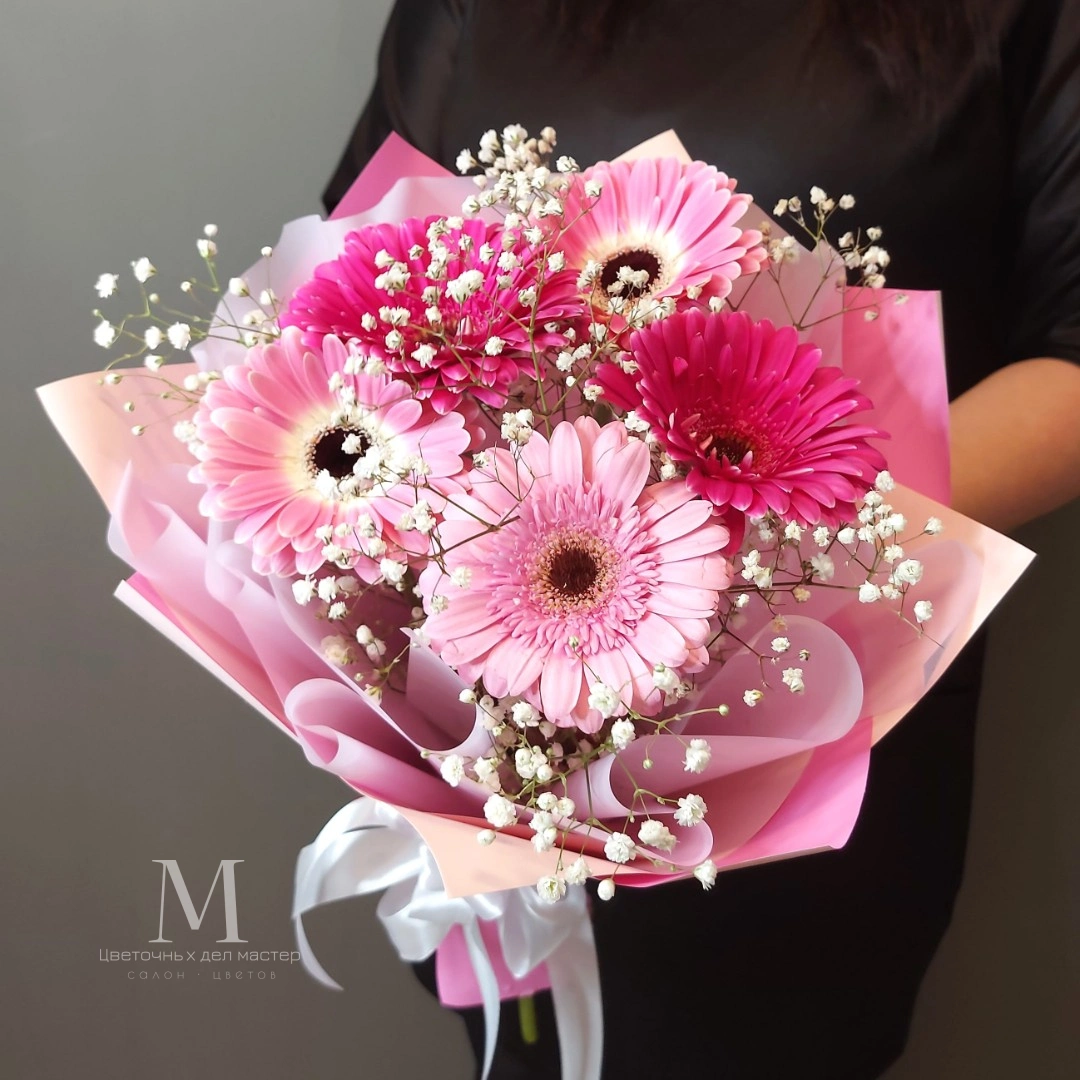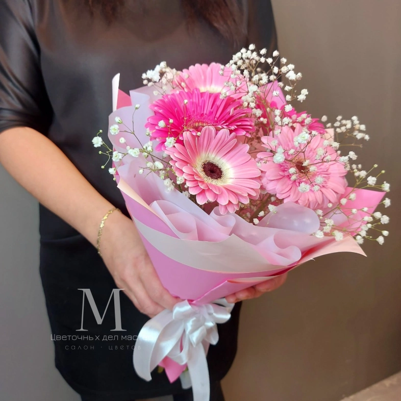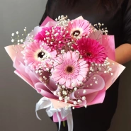 ГлавнаяКаталогБукетыБукет «Розовые герберы»