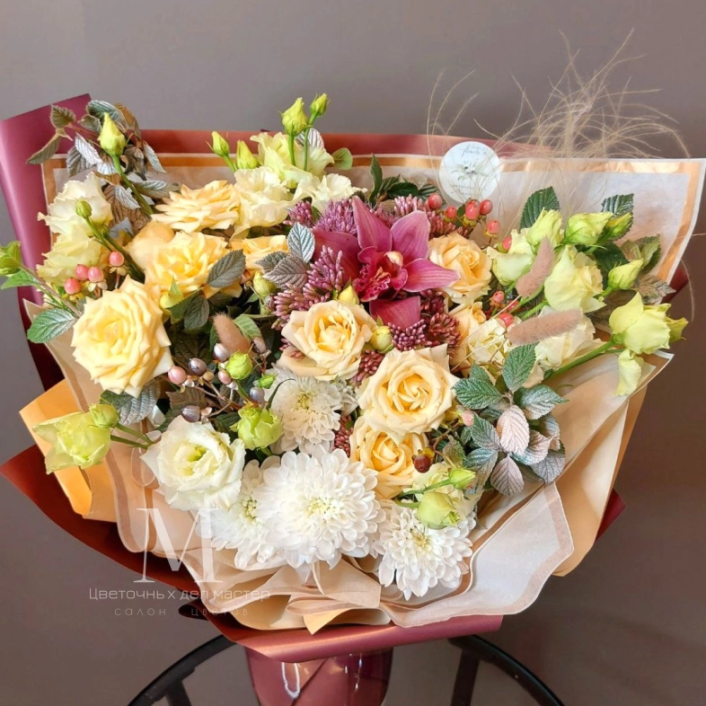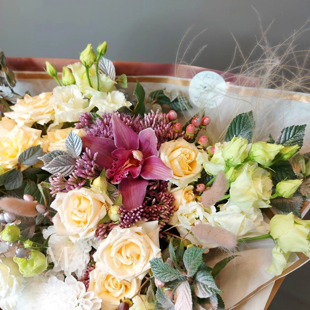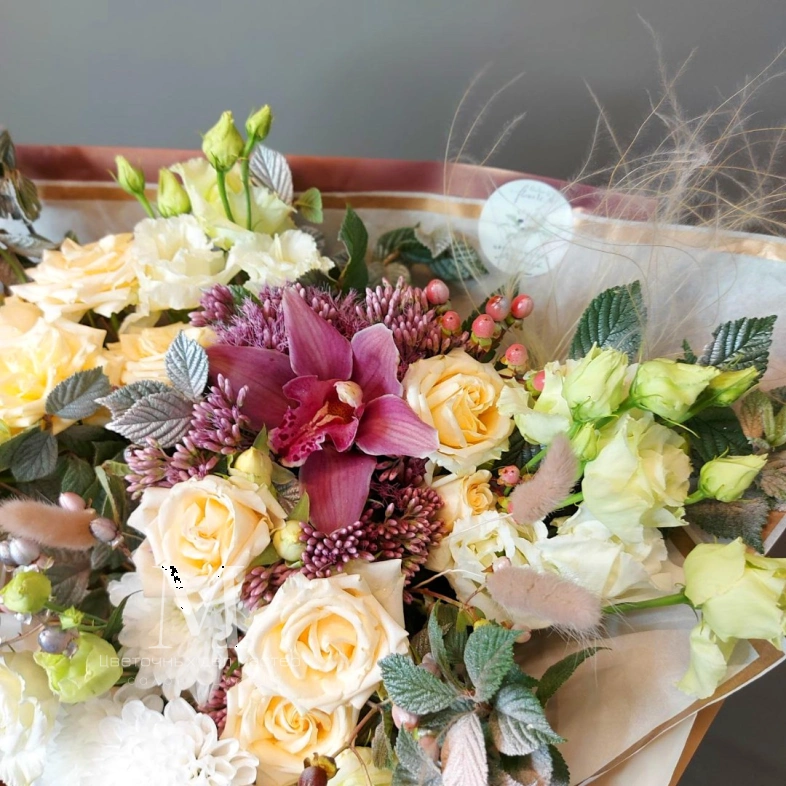 Этот букет - настоящее произведение искусства, которое способно вызвать восхищение и восторг у любого, кто его увидит.