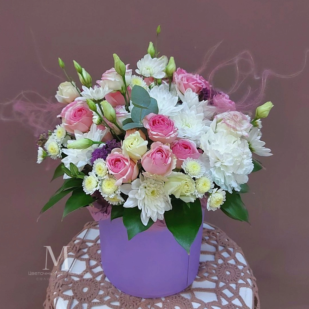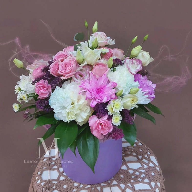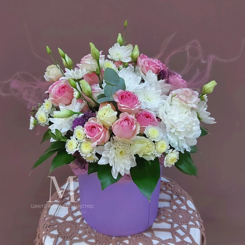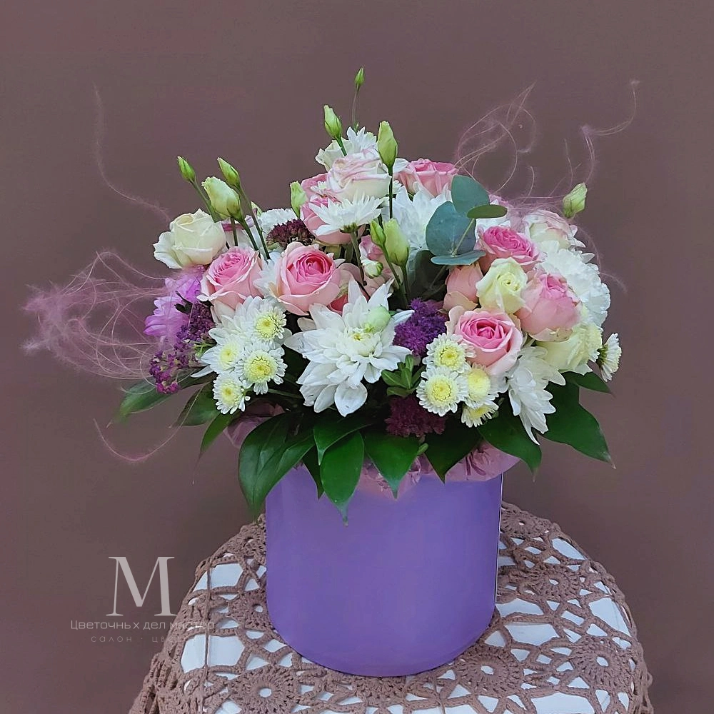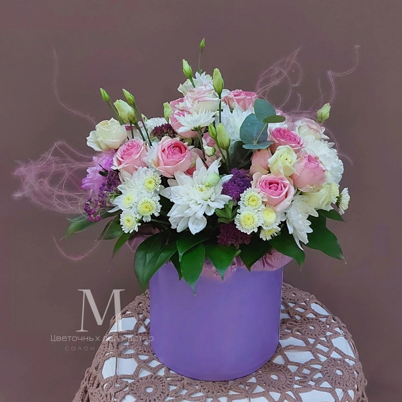 Цветочная композиция в коробочке - это элегантное сочетание прекрасных цветов, представленных в стильной упаковке. Каждая композиция тщательно создана с использованием самых свежих и красивых цветов, чтобы подарить незабываемые эмоции и радость.