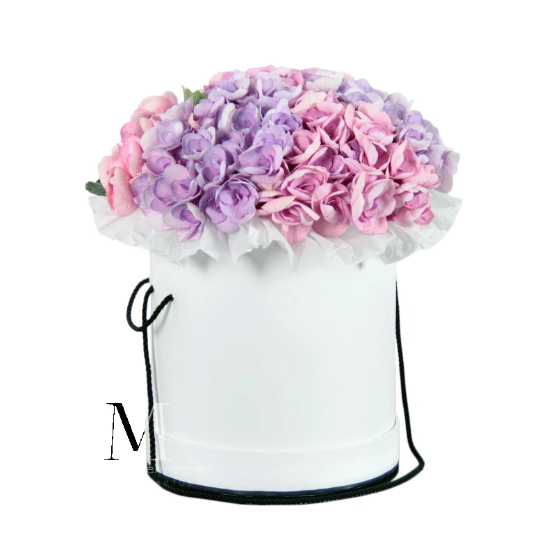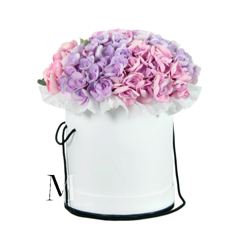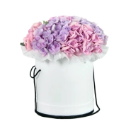 ГлавнаяКаталогКомпозицииВ коробкеГортензия в шляпной коробке