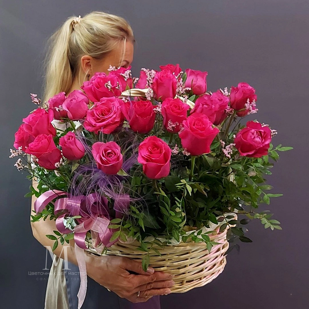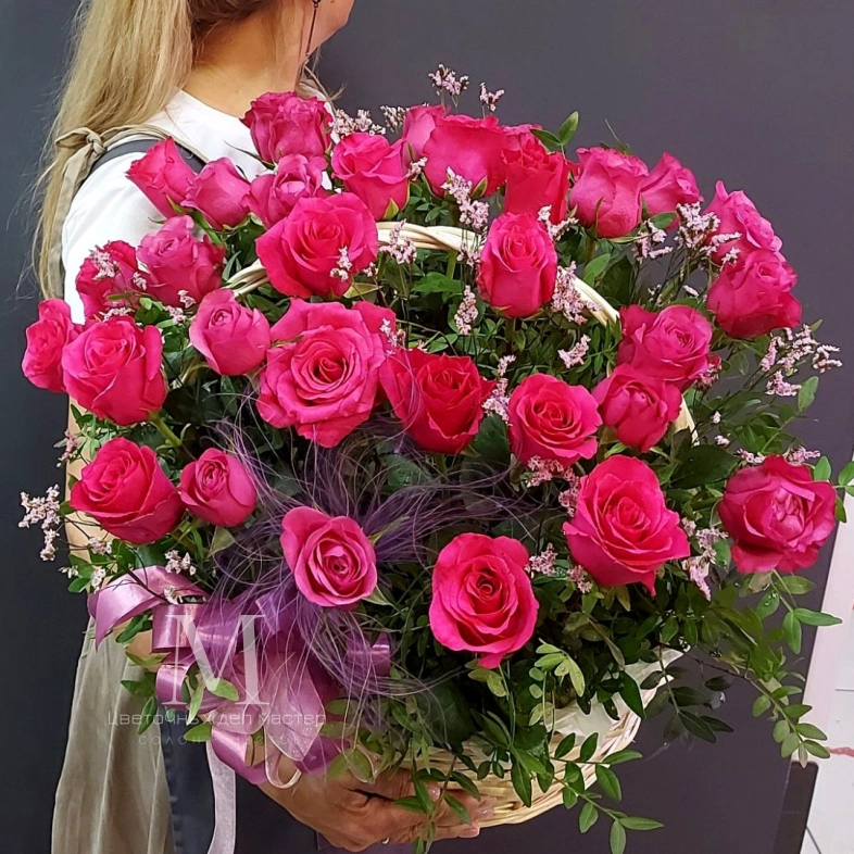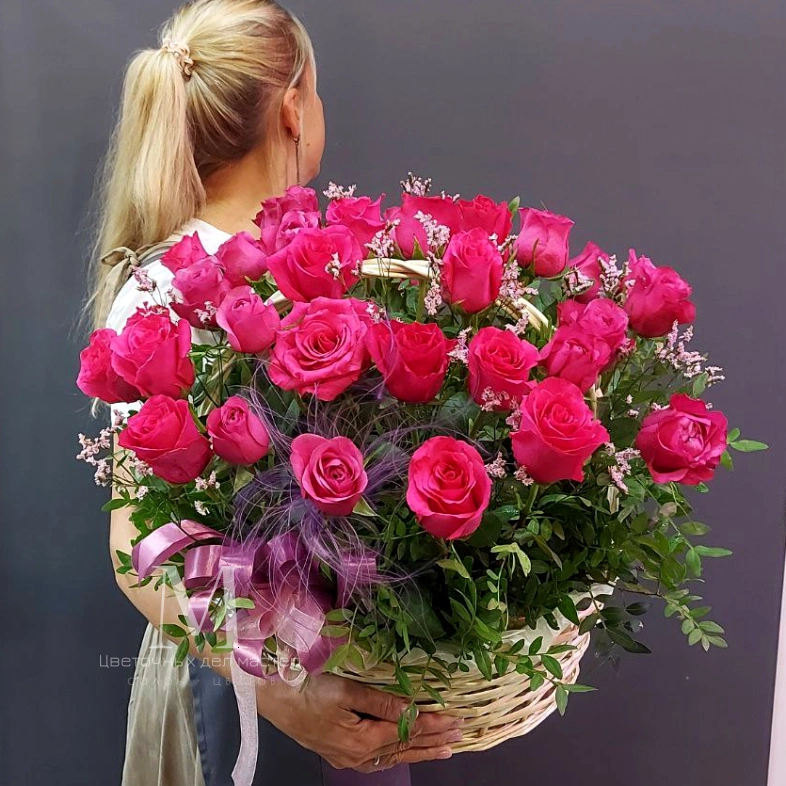 Большая корзина розовых роз - это прекрасный подарок, который может подчеркнуть нежность и романтику особого момента.