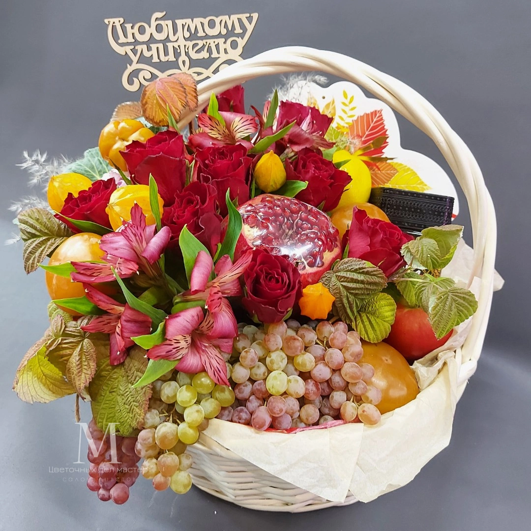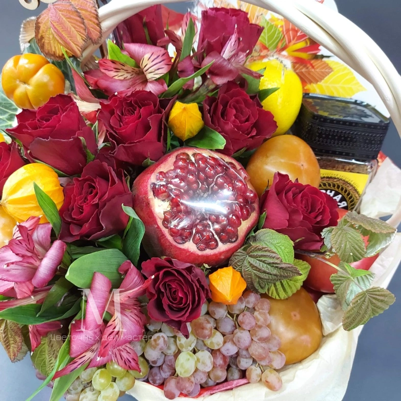 Эта корзинка - идеальный подарок для любого повода. В ней сочетаются красота и вкус, создавая неповторимый образ. Яркие и свежие цветы радуют глаз и поднимают настроение.