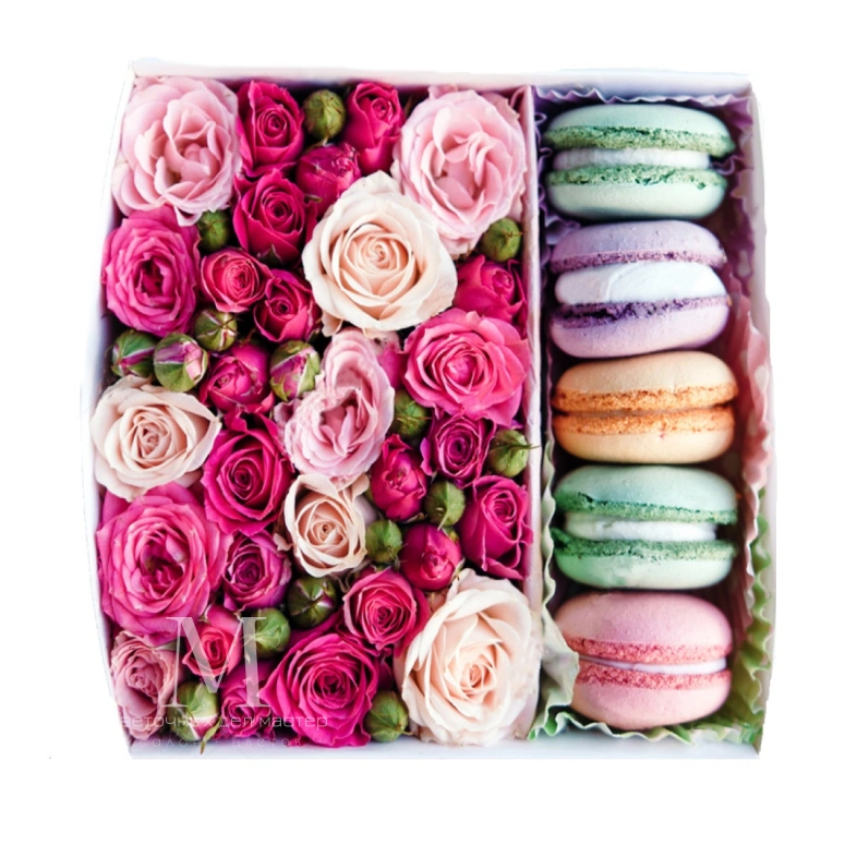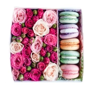 ГлавнаяКаталогКомпозицииСладкиеКоробочка с цветами и печеньем