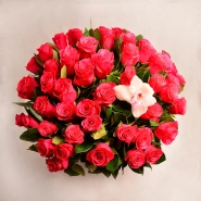 Шикарный букет из роз с нежным цветочком орхидеи.