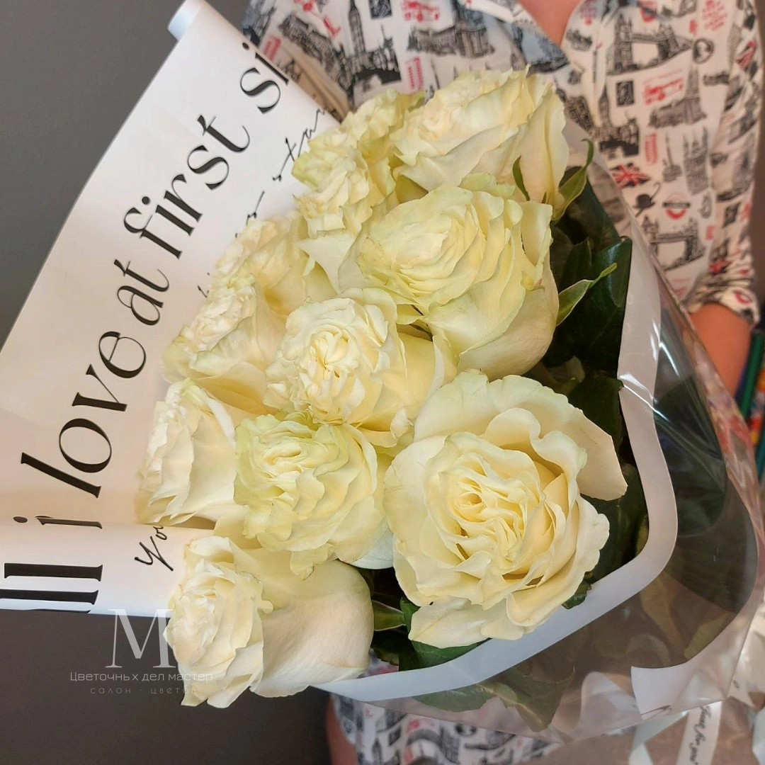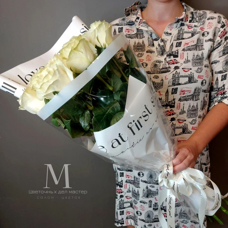 Букет из 11 белых Эквадорских роз - это символ элегантности, чистоты и нежности. Каждая роза в этом букете является неповторимой и уникальной, как и каждый момент, который мы хотим передать особенному человеку.
