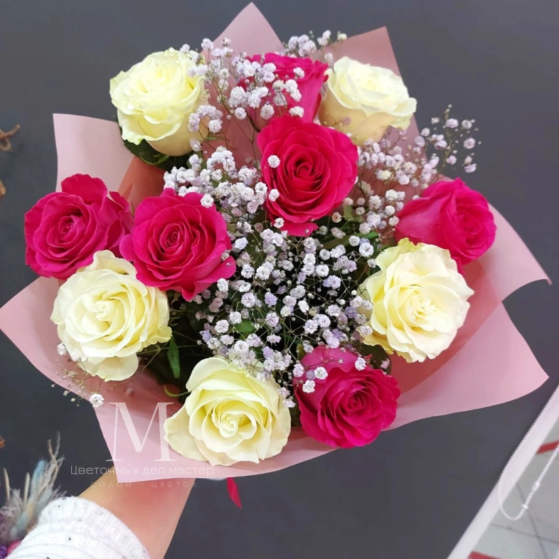 Букет из розовых и белых эквадорских роз - это великолепное сочетание элегантности и нежности. Эквадорские розы известны своей красотой и длительным сроком цветения, что делает их идеальным выбором для создания впечатляющих букетов.