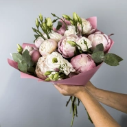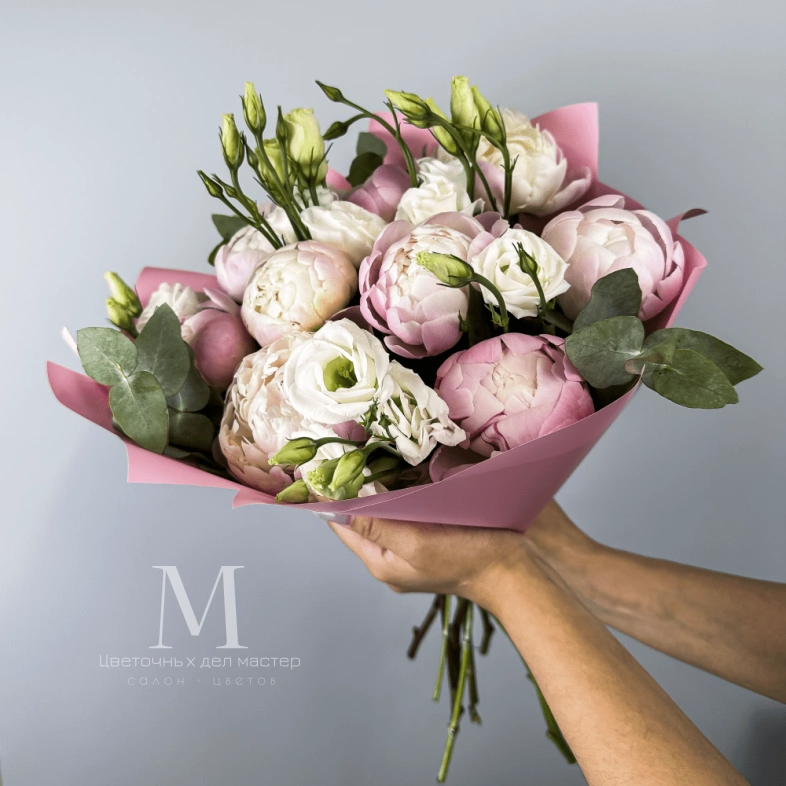 ГлавнаяКаталогБукетыБукет с пионами и эустомами