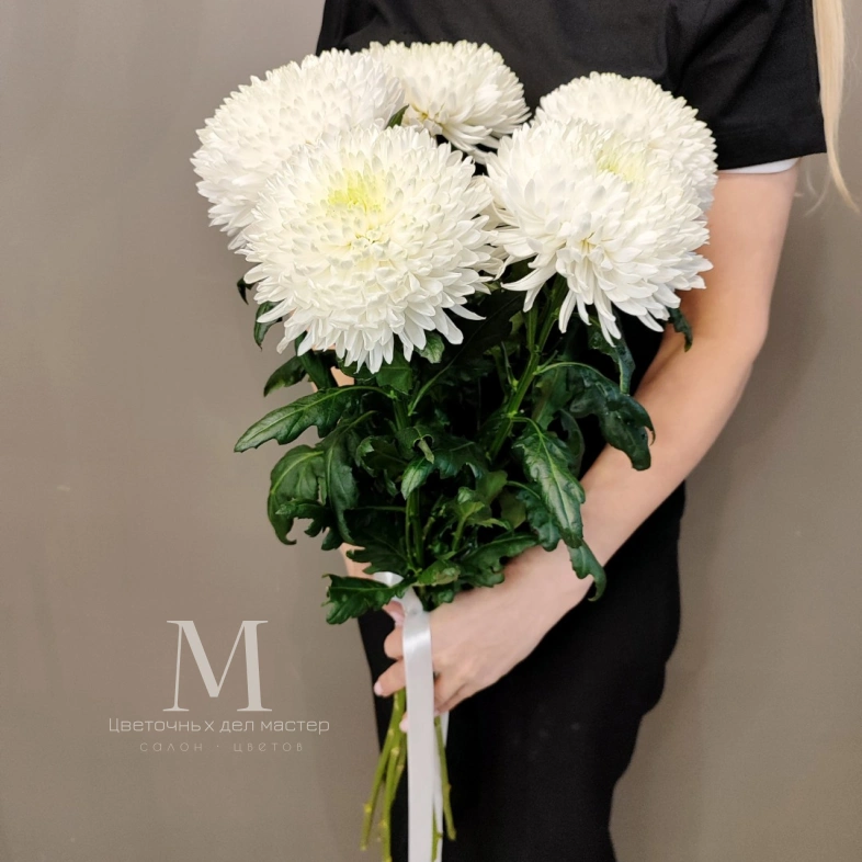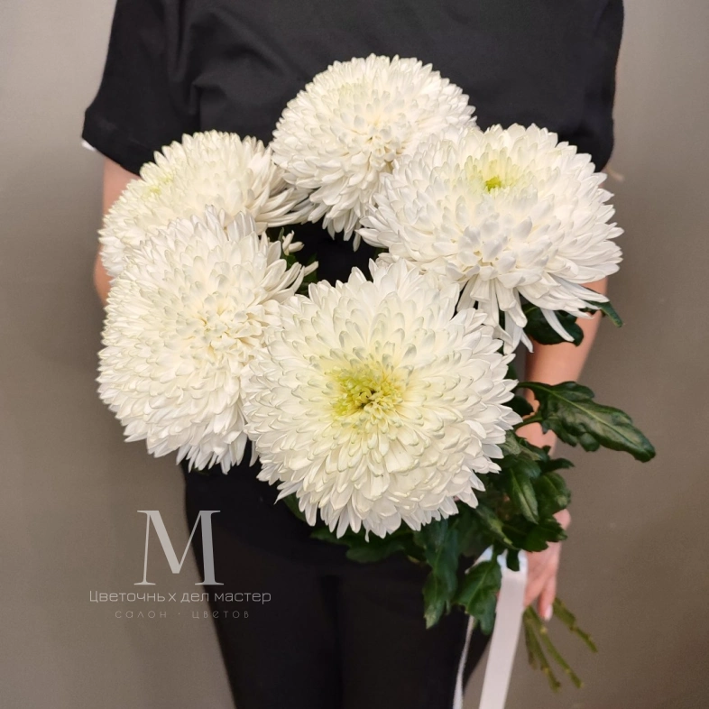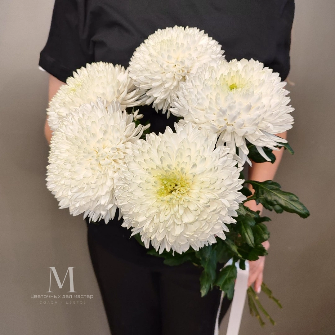 Букет из пяти крупных одноголовых хризантем сорта Магнум.