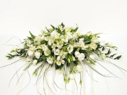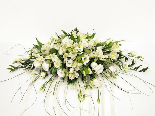 Чувственная и нежная композиция из белых эустом украсит ваш свадебный стол
