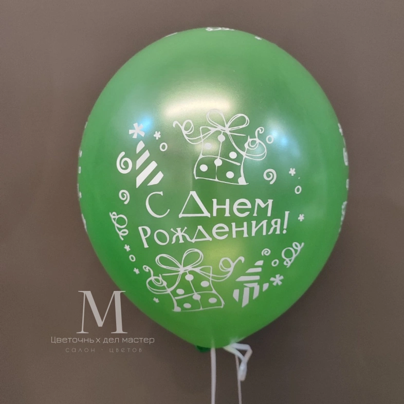ГлавнаяКаталогВоздушные шарыС рисункомШар зелёный «С днём рождения»